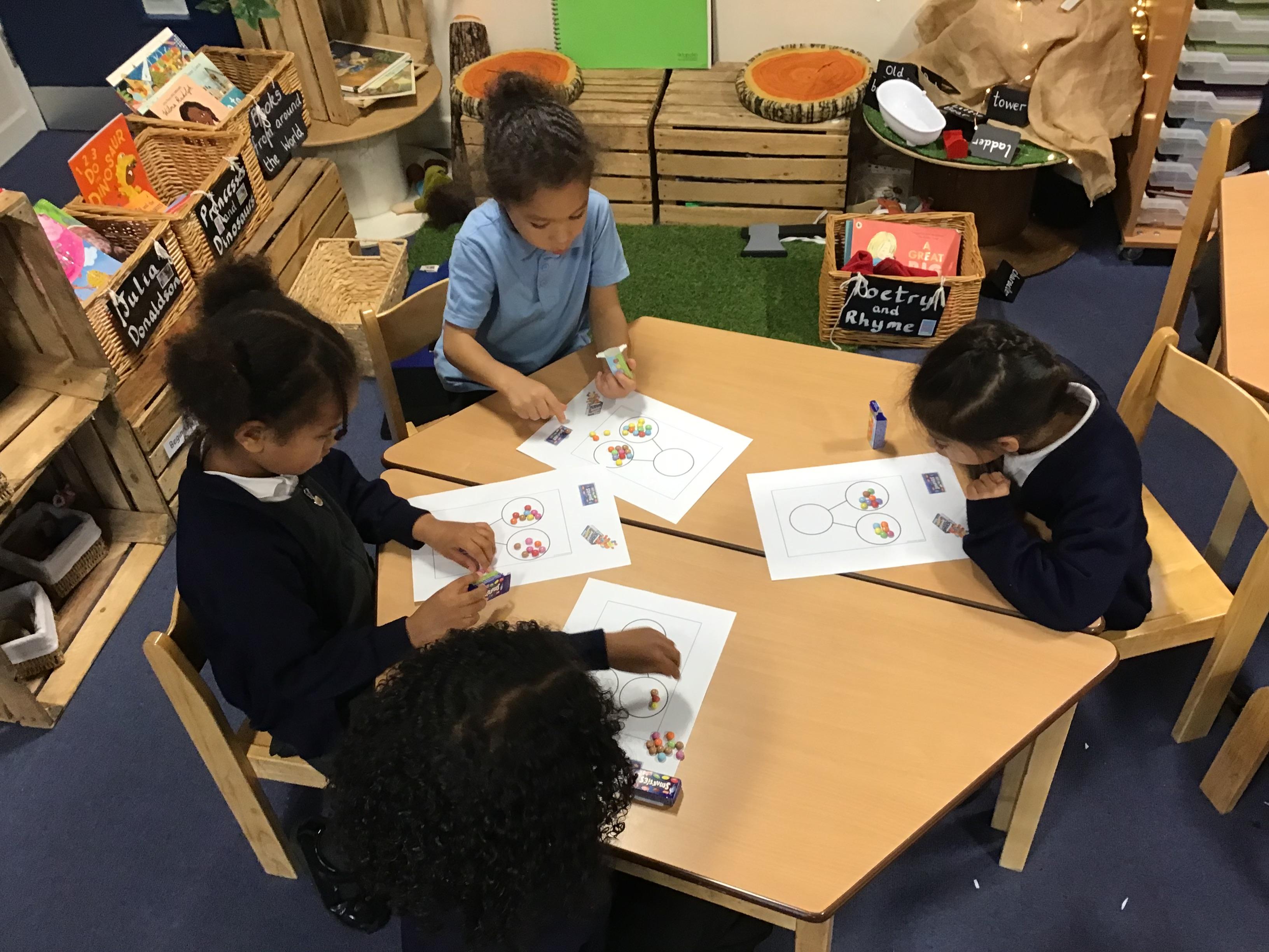 Autumn II Week Three Number bonds- Year One are such Smarties! Using the part-whole model and a box of Smarties, we made problems for our friends to solve so that we could show off our number bond skills.