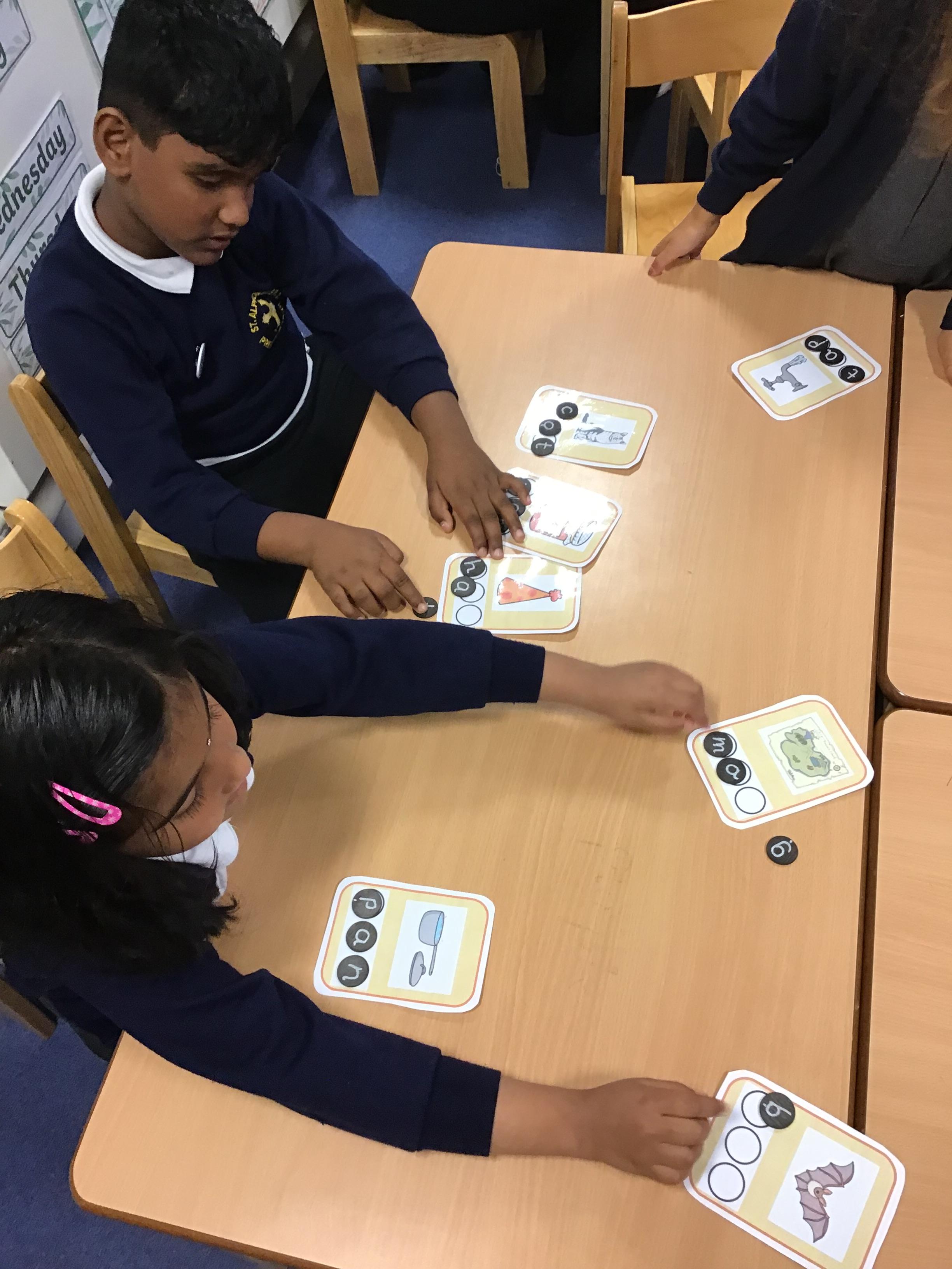 Phonics - Week Seven – Using our Fred Fingers, we have selected the sounds to spell out what is on the cards.