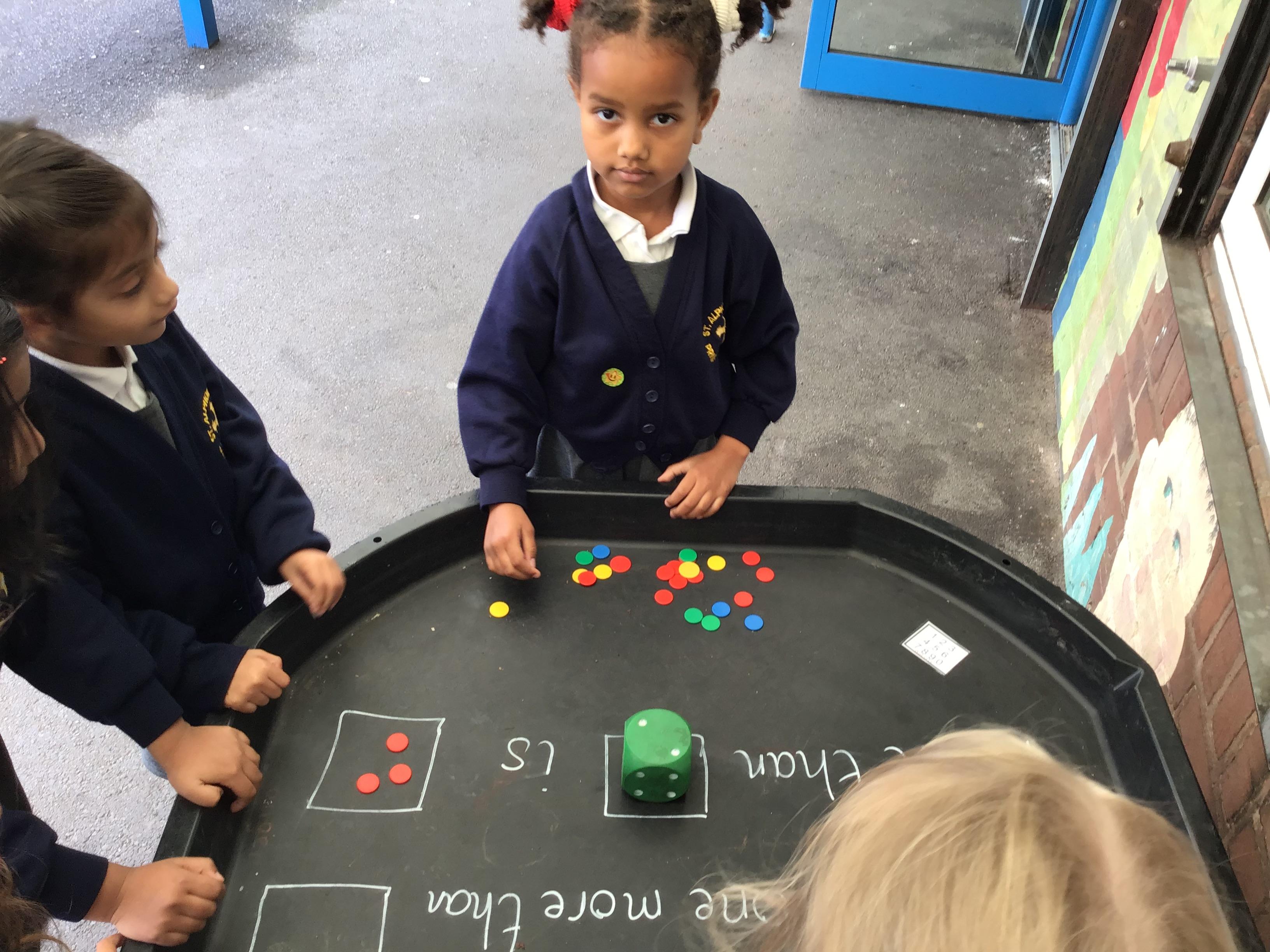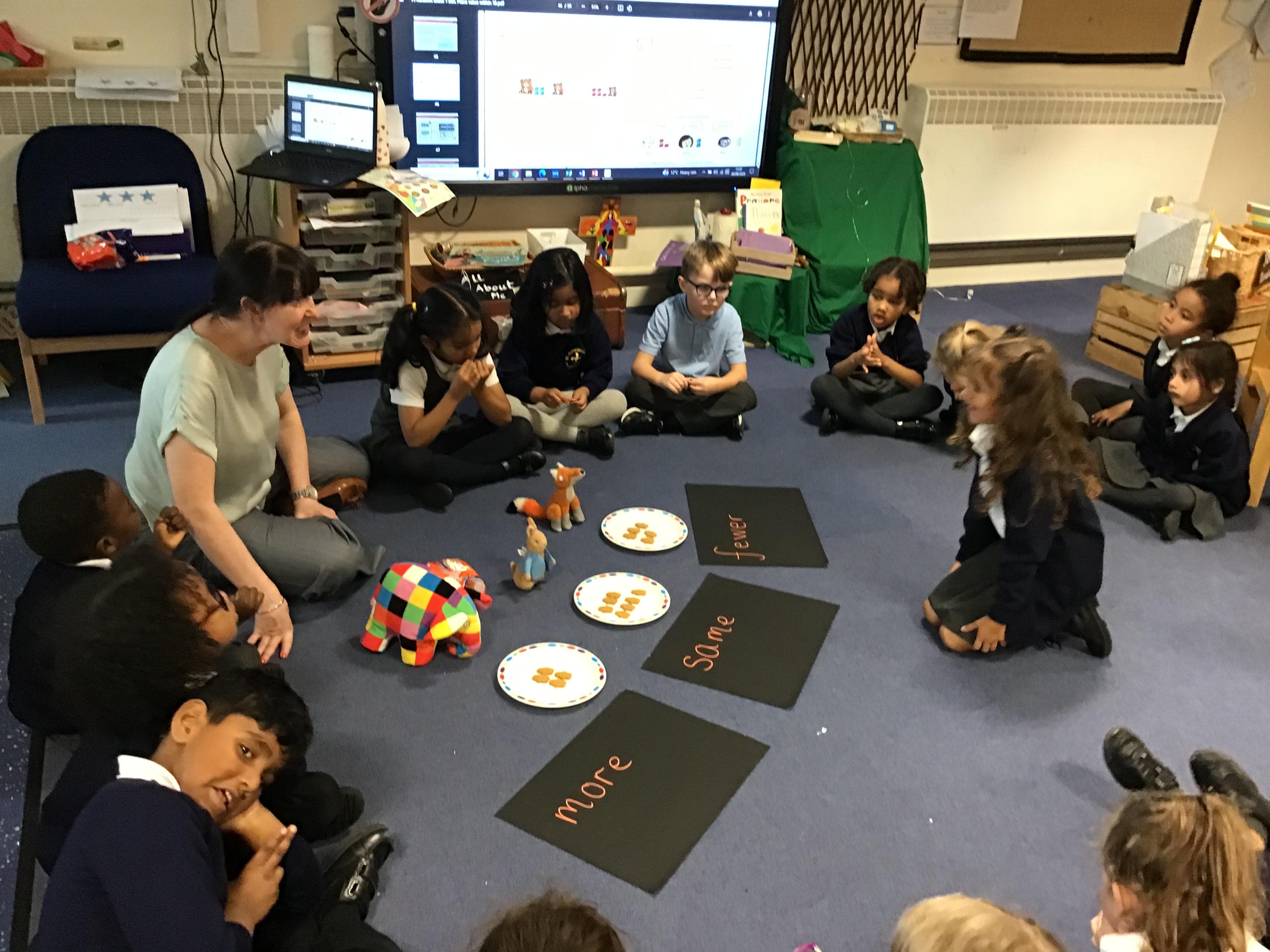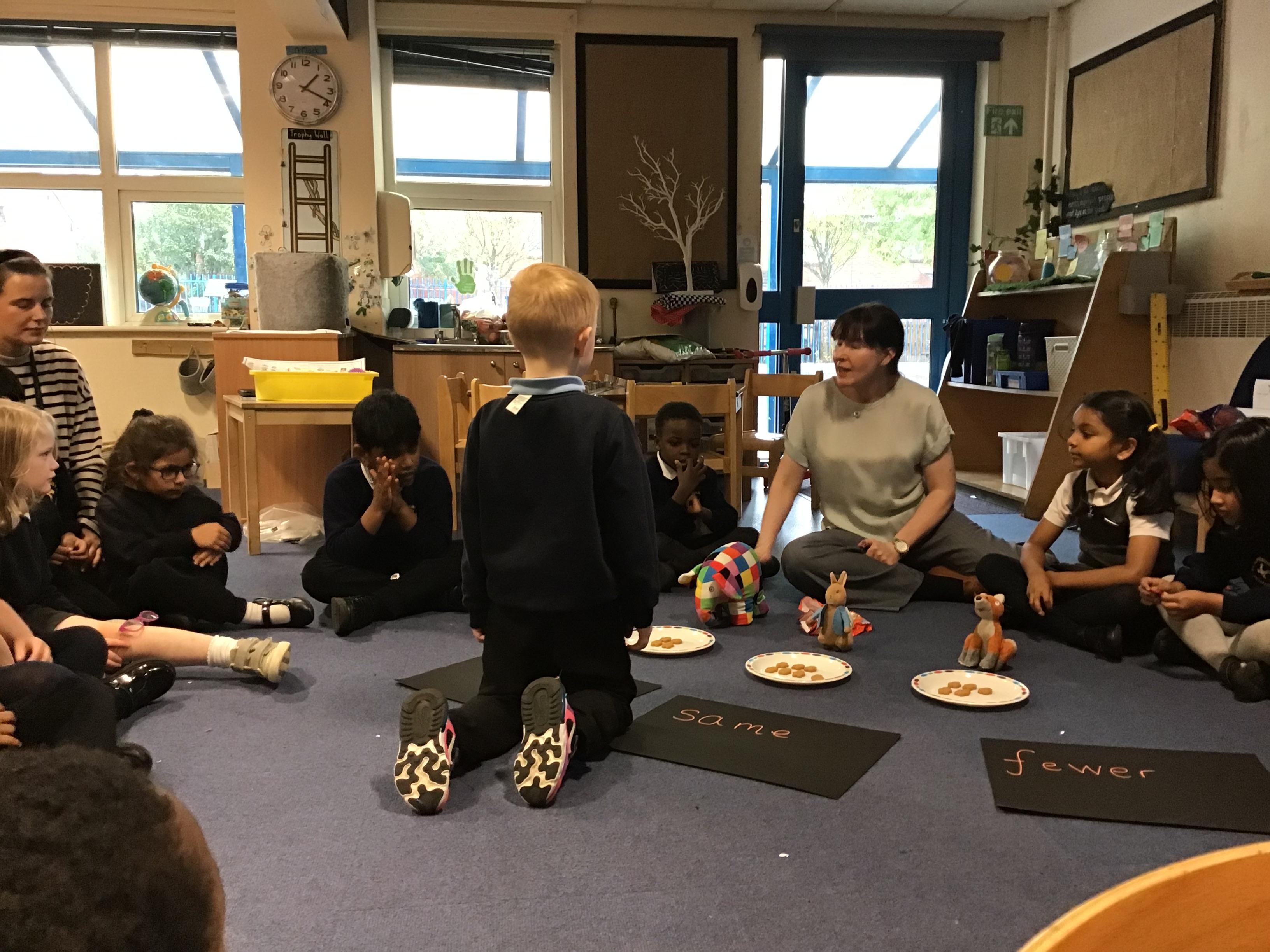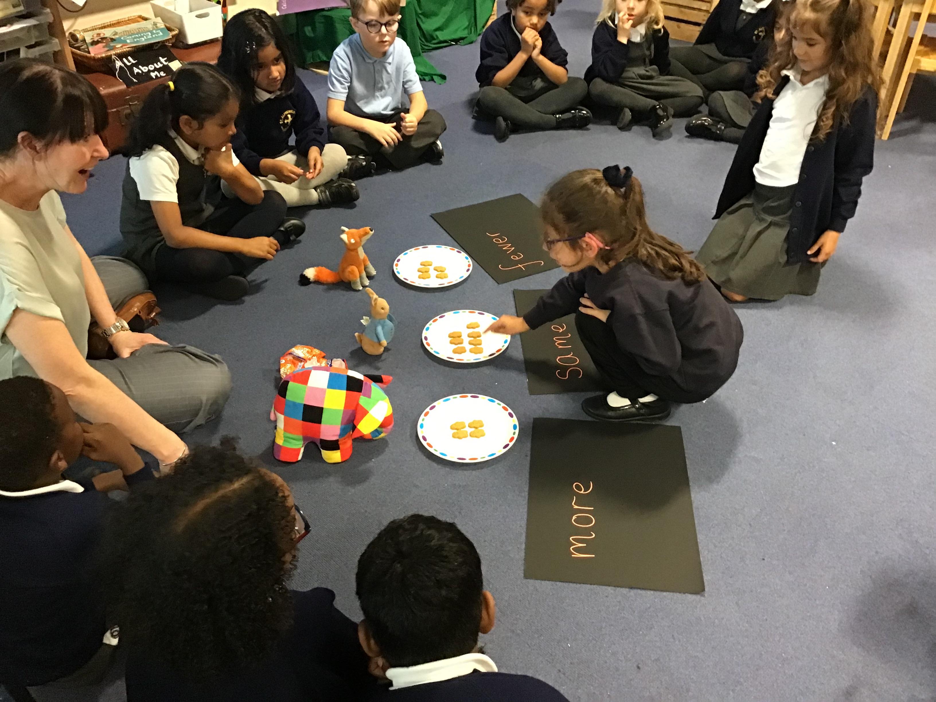 More, Fewer, Same - Week 5 The children have enjoyed using concrete materials to learn mathematical vocabulary, including more, fewer and same. Thank you Meerab for counting the Gingerbread Men for us!