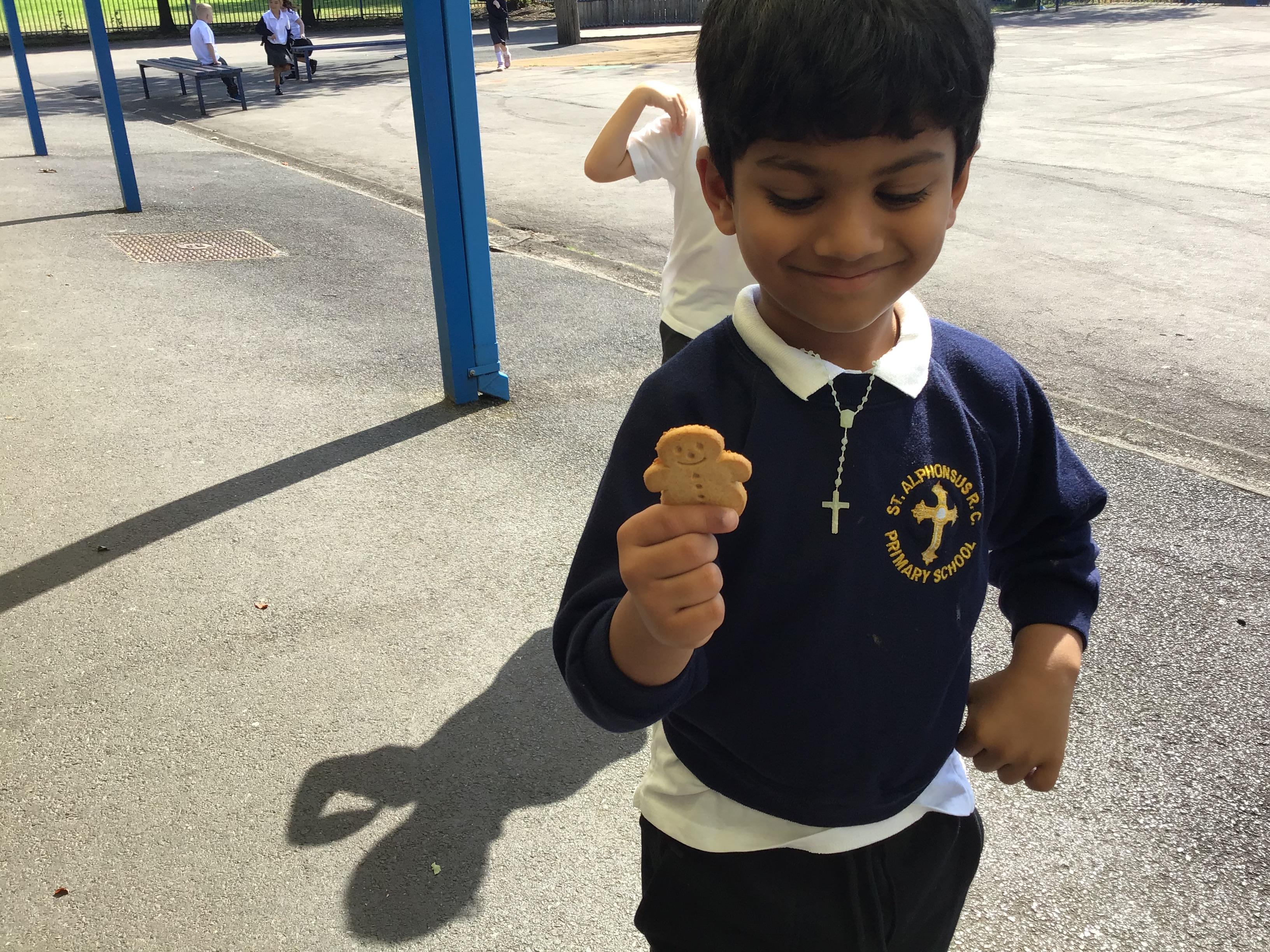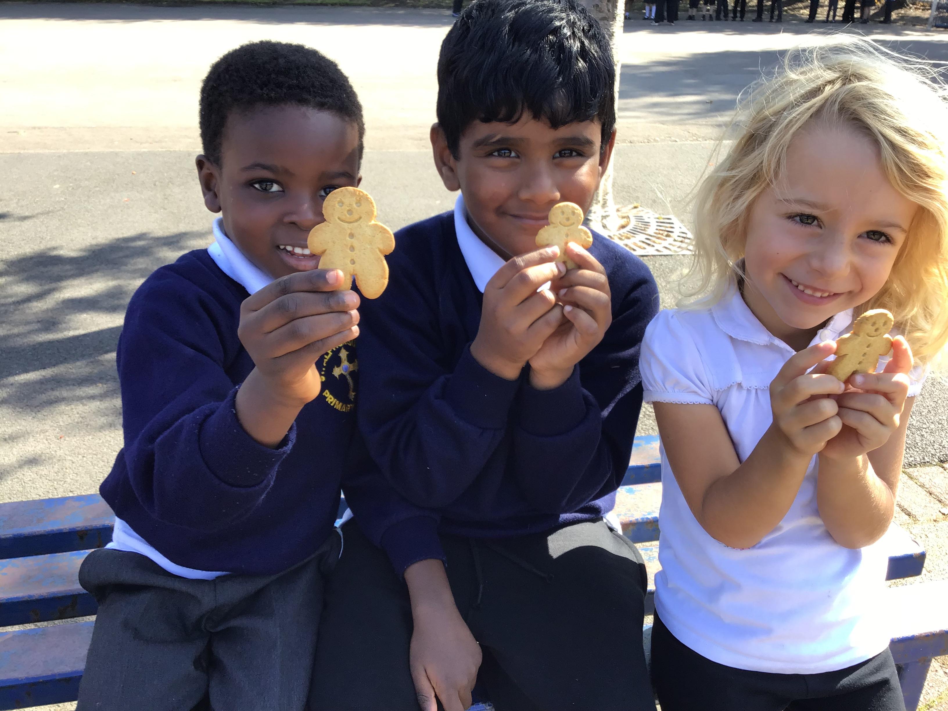 Tasting our Gingerbread Men - YUMMY! We enjoyed tasting our Gingerbread men and describing the smell and taste. We have looked at the root ginger to help us understand how the Little Old Women made the gingerbread man.