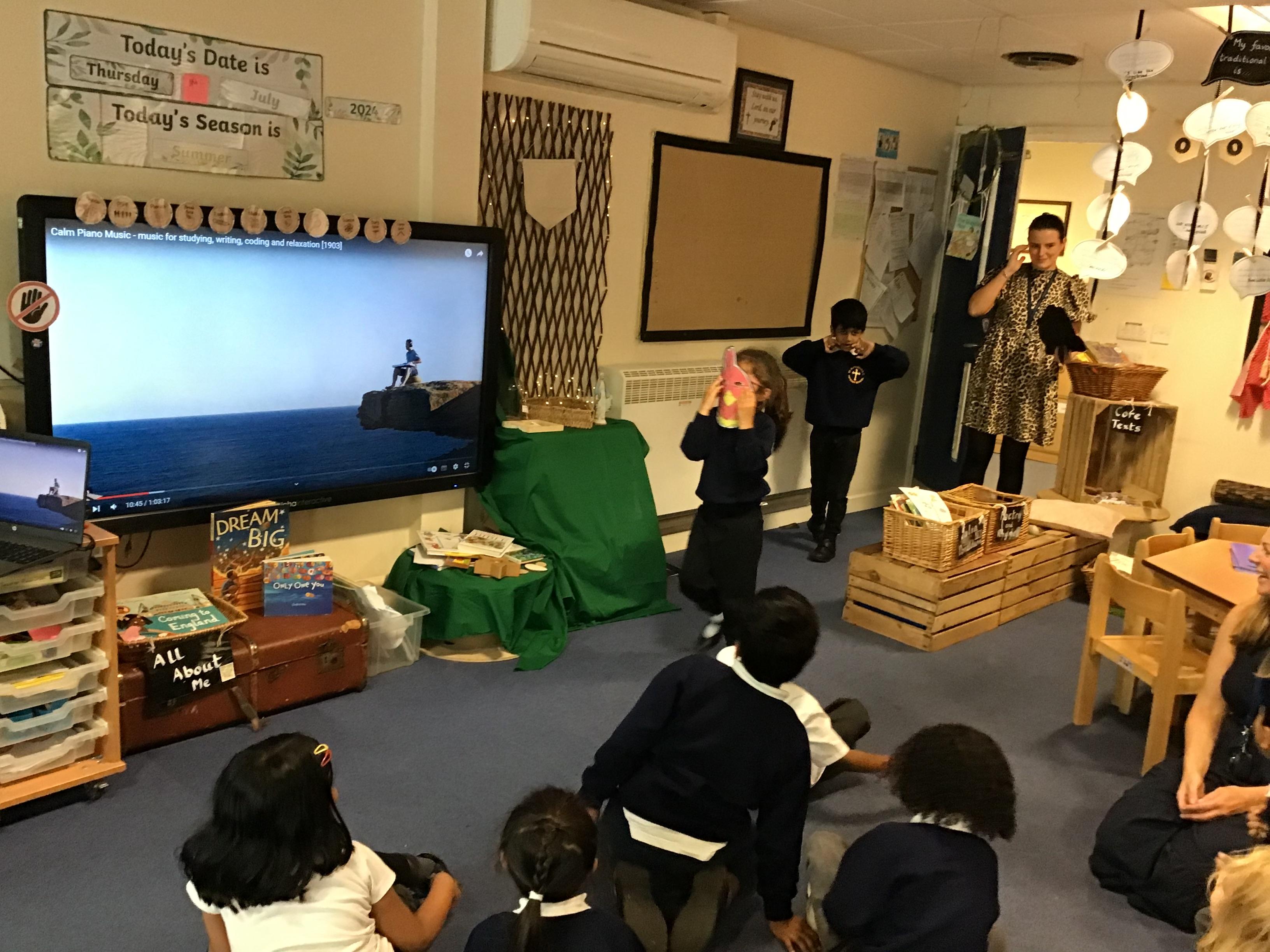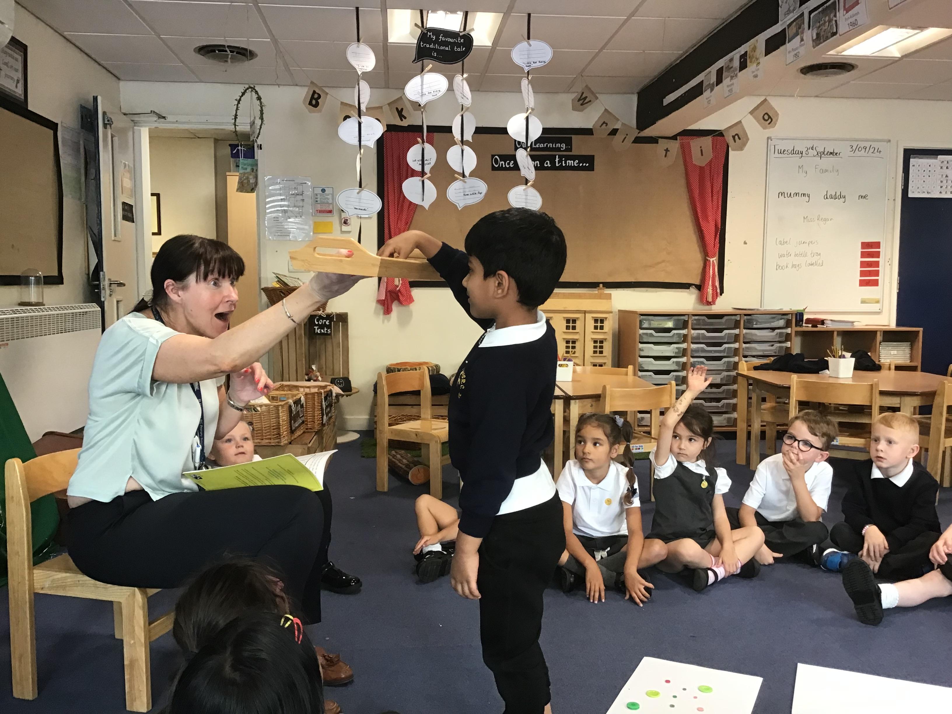 Gingerbread Man – Hot Seating Mrs Fox enjoyed quizzing Miss. Roberts about how the Little Old Man behaved- she was a star! Look out for Meerab and Marsei showing off their acting skills.