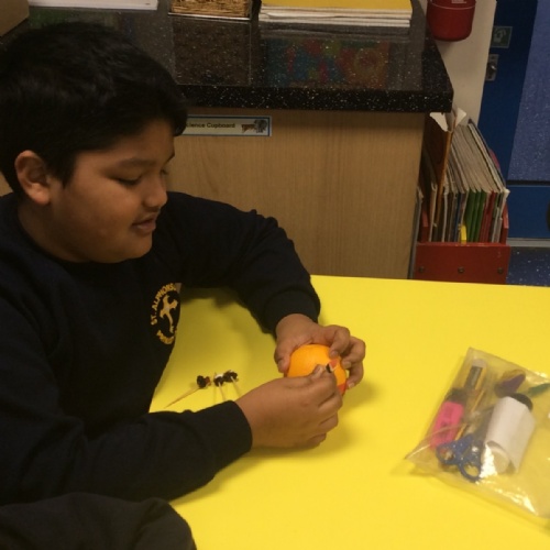 During Advent, we were learning about Joseph and how he received a sign in his dream to keep his family safe. We made our own Sleeping Josephs to take home to share with our families so we could put special prayers underneath them.