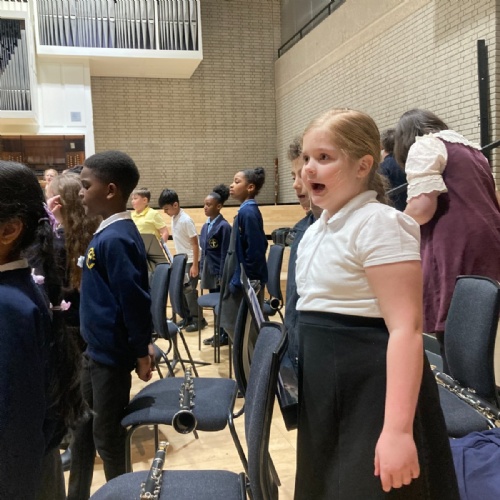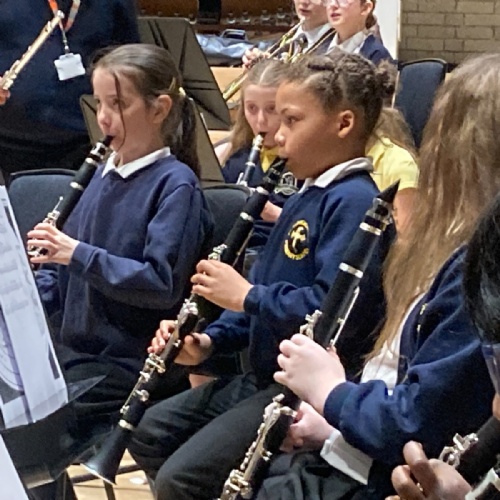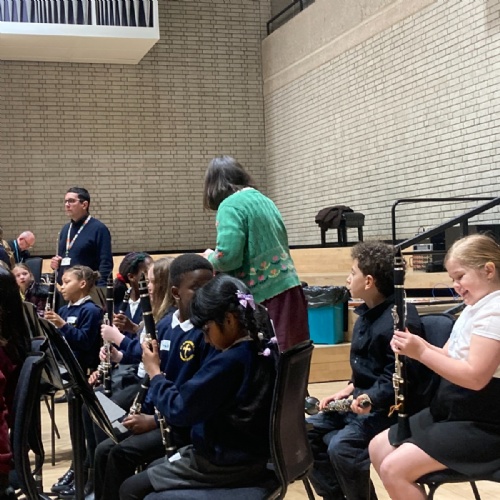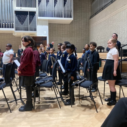 The children who are learning to play the clarinet through the Furthering Talent programme were invited to spend the day at the RNCM. They met with other schools and performed as a 75 piece orchestra.