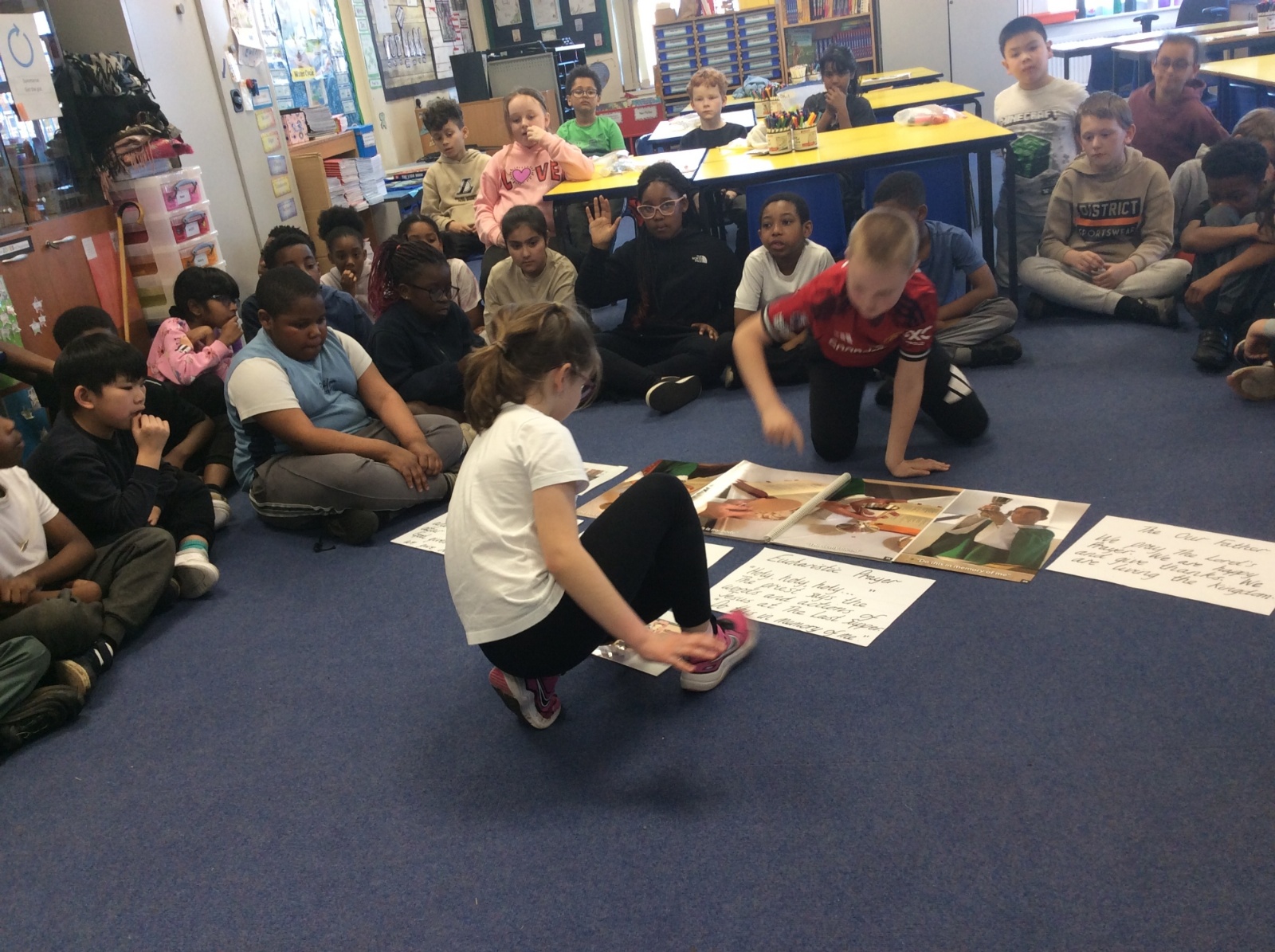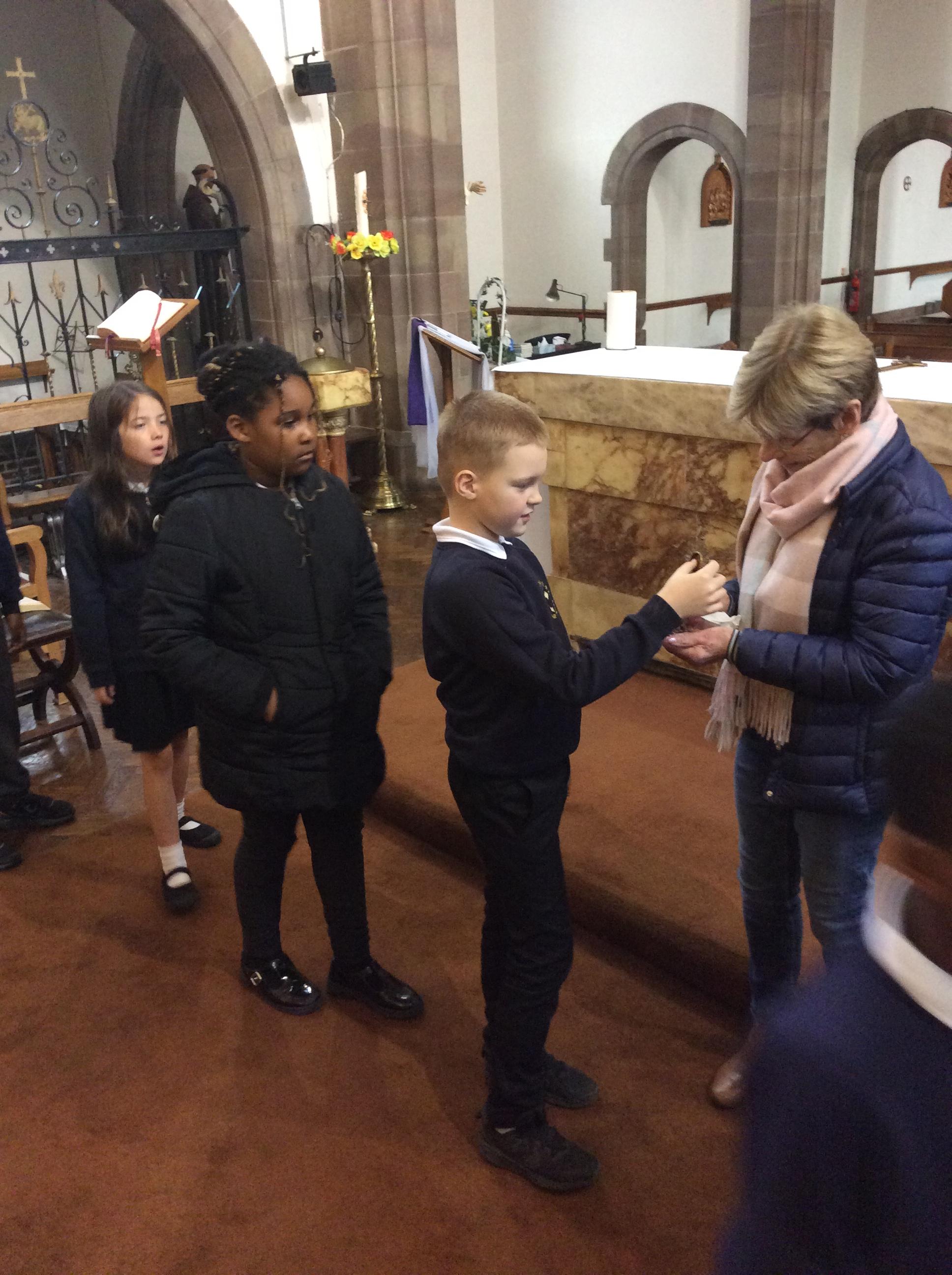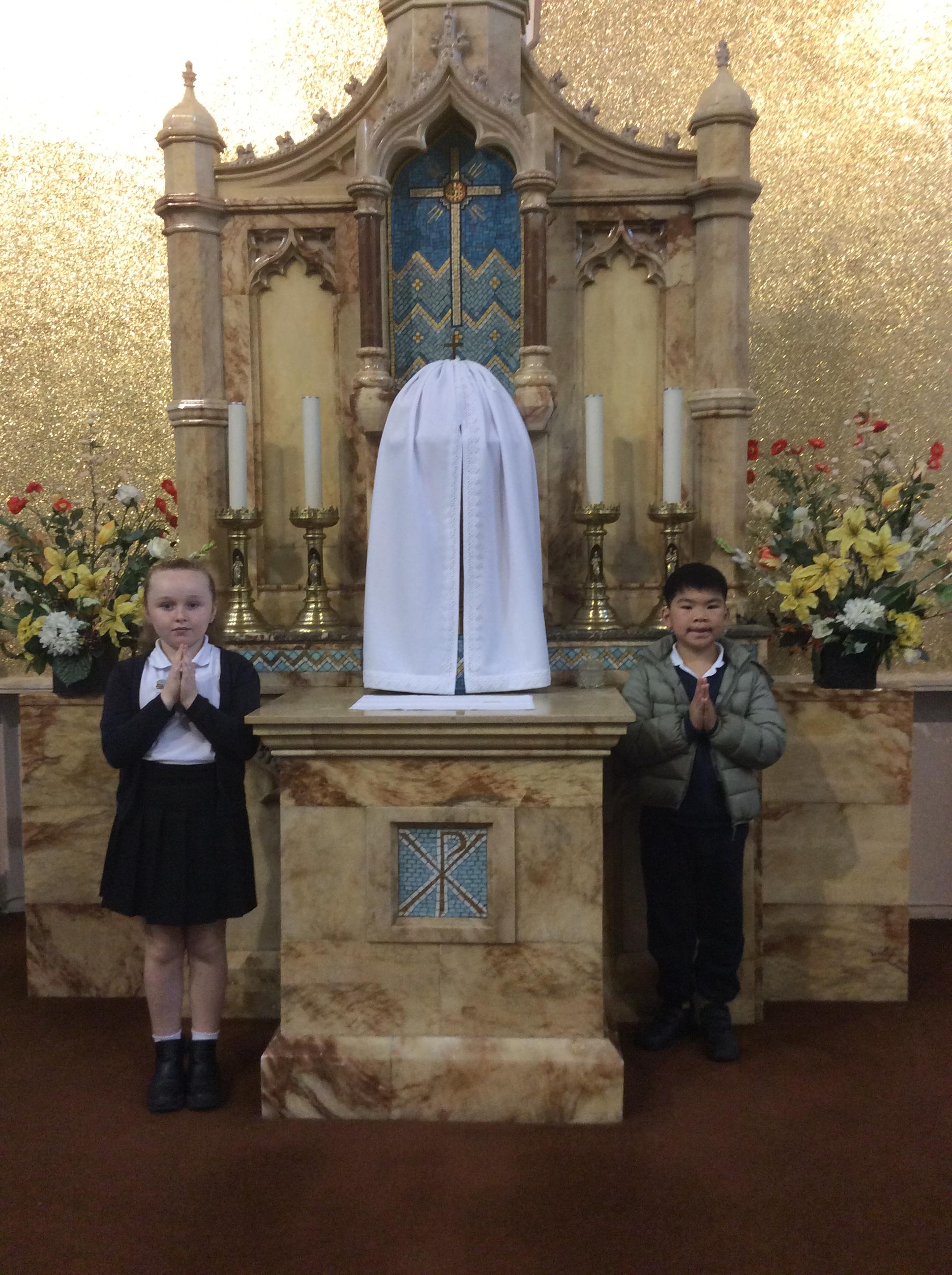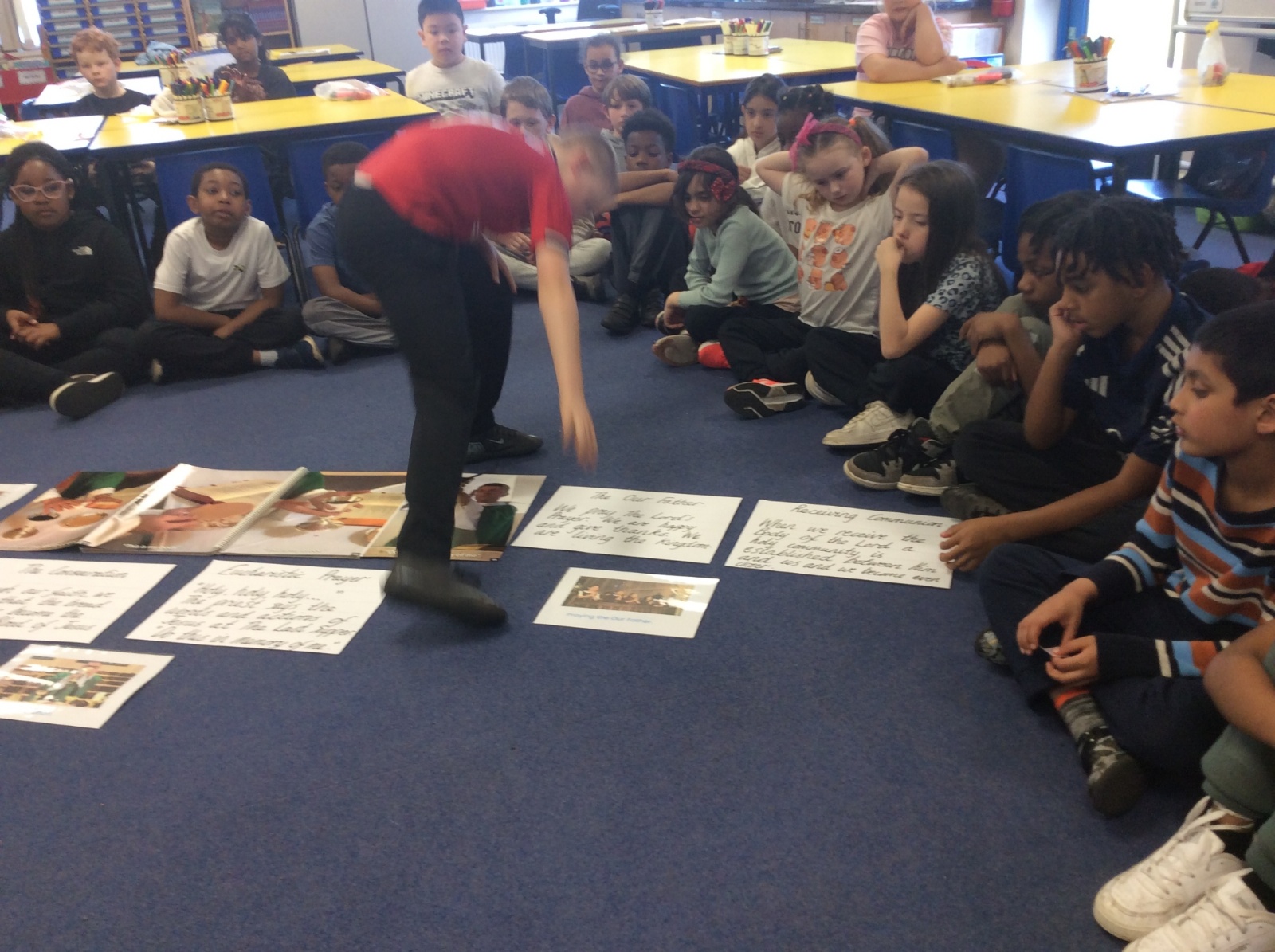 Year 3 and 4 worked together to link the words and actions of The Feeding of the 5000, The Last Supper and The Liturgy of the Eucharist. They looked at the four point structure of the Mass and focused on the words and actions during The Liturgy of the Eucharist. They sequenced the events and recorded a synopsis of what happens at each point during this part of the Mass.