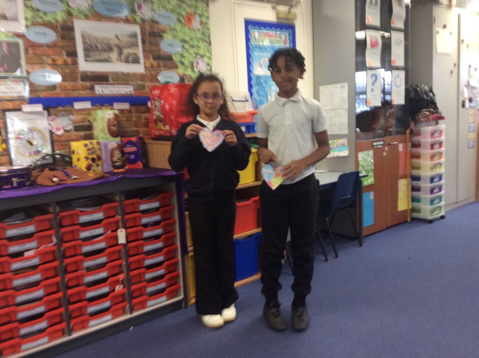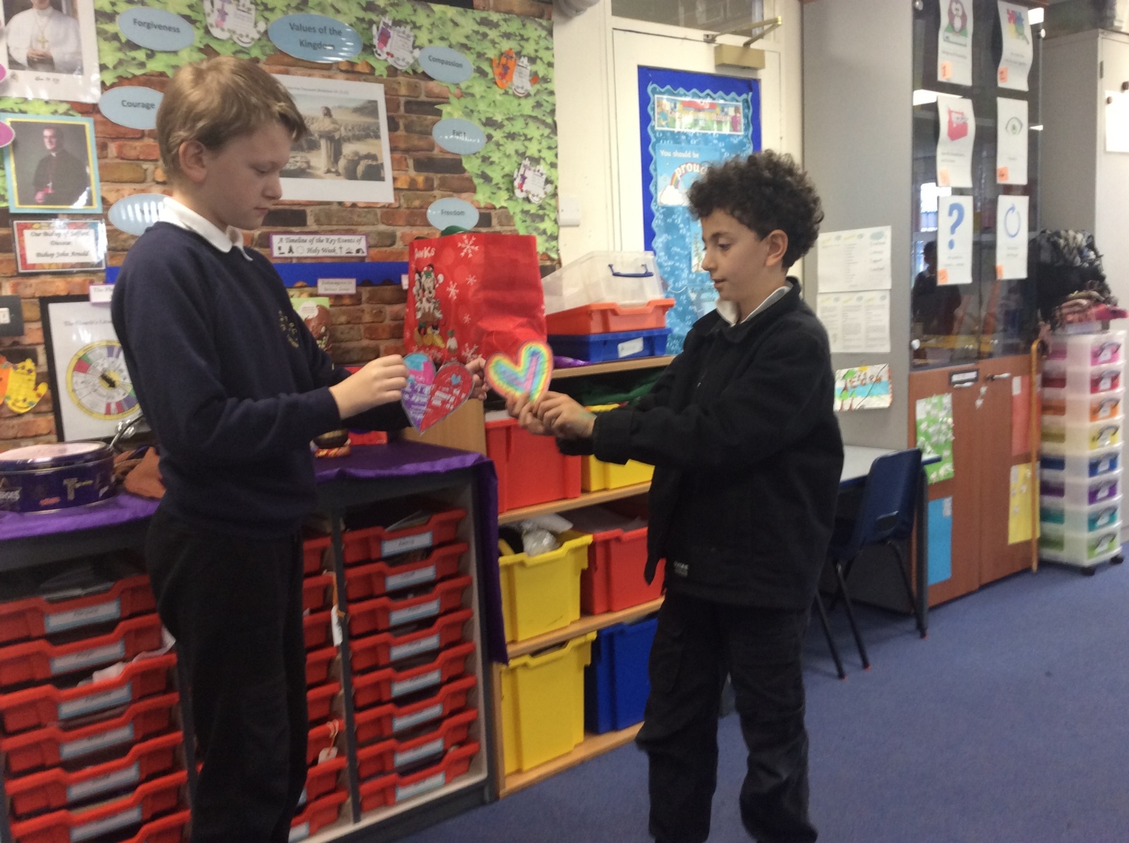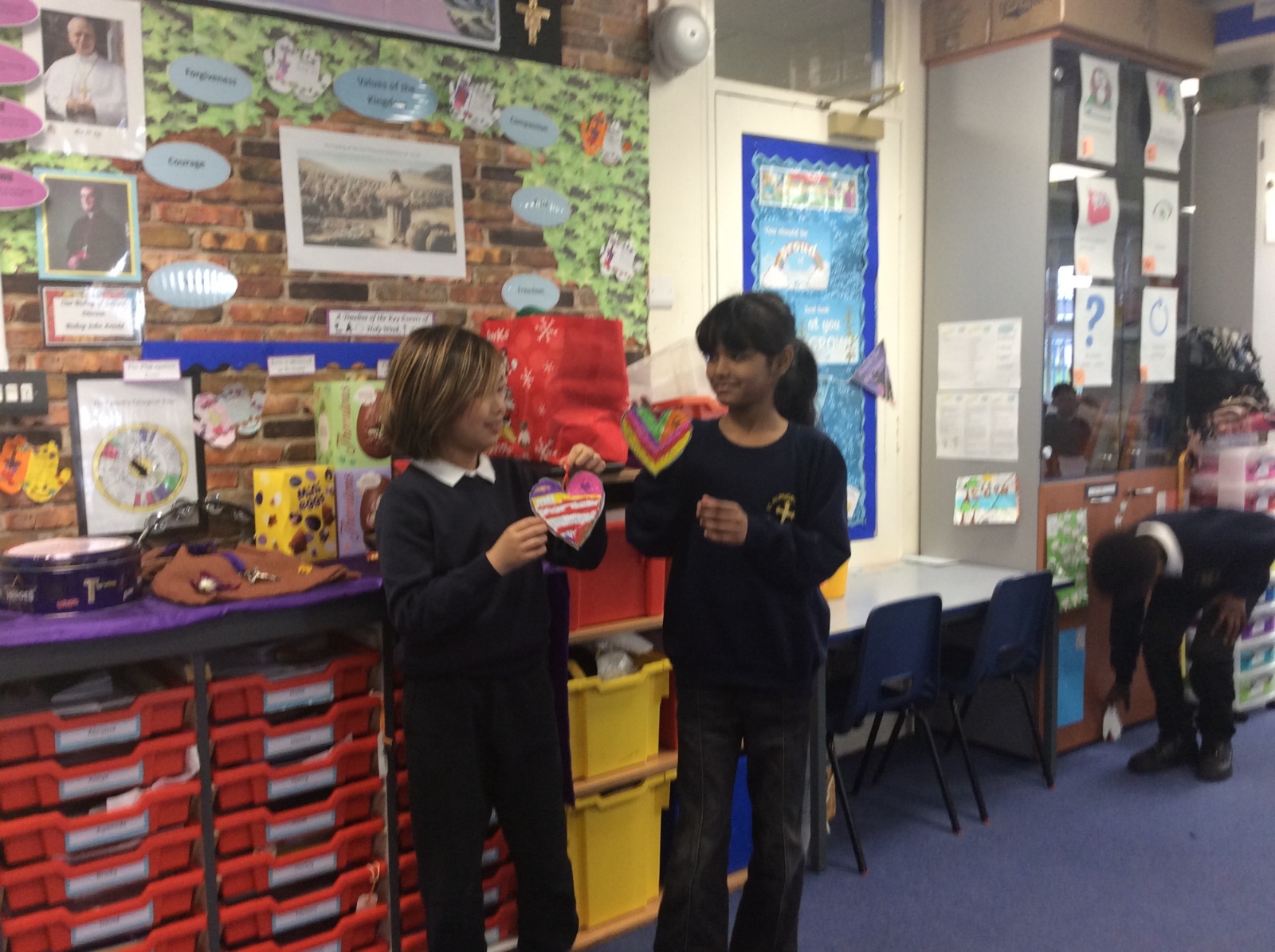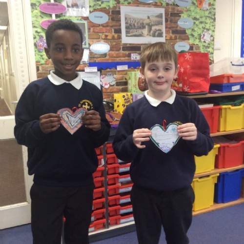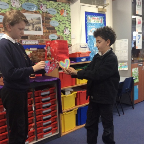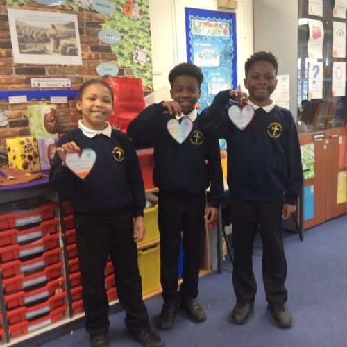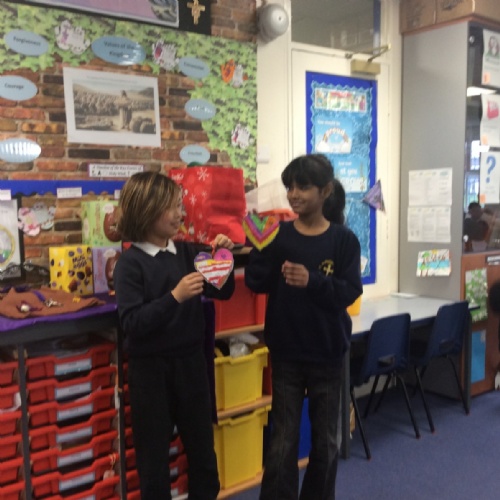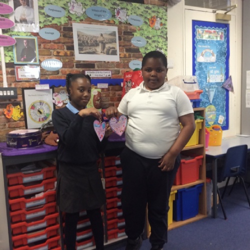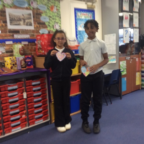 The heart symbolises love, care and reaching out to others. Giving our hearts is about listening, helping and being kind. Everyone sat with a classmate and had a short conversation. After their chat, they filled in and decorated a heart to show what the other person had shared. They then presented the heart to the other person. Our actions today showed noticing, listening, sharing, including and loving others with all our hearts.