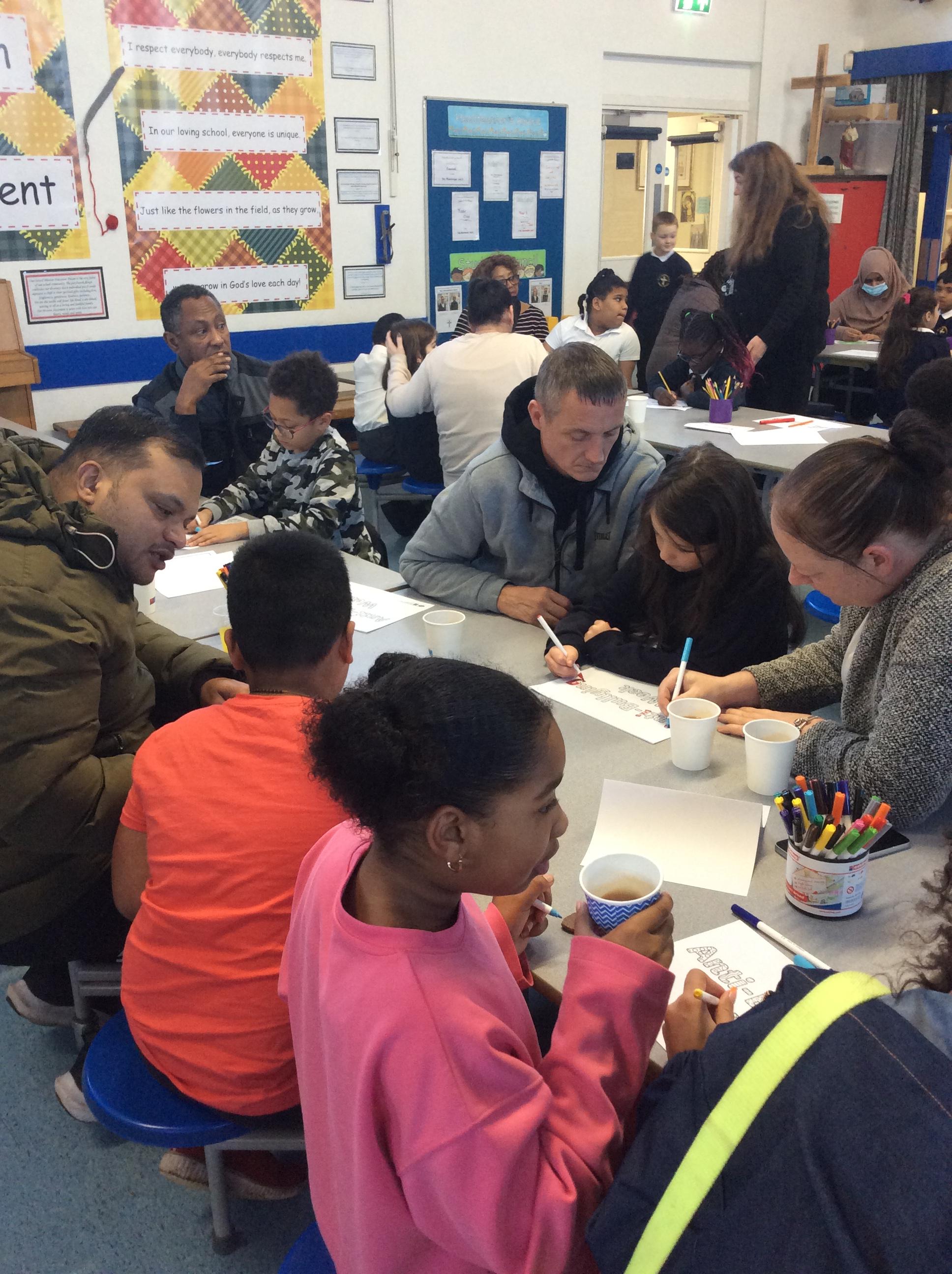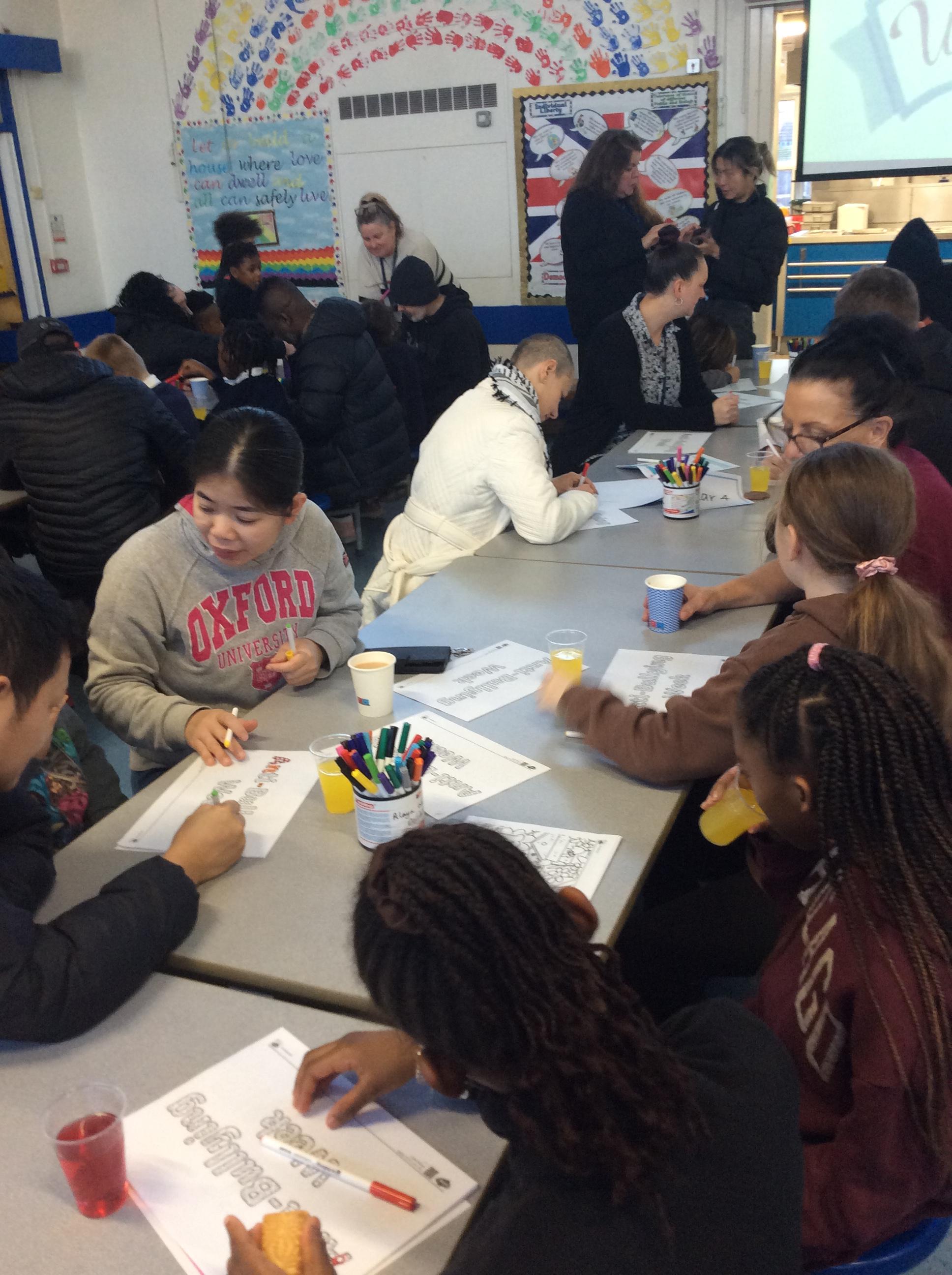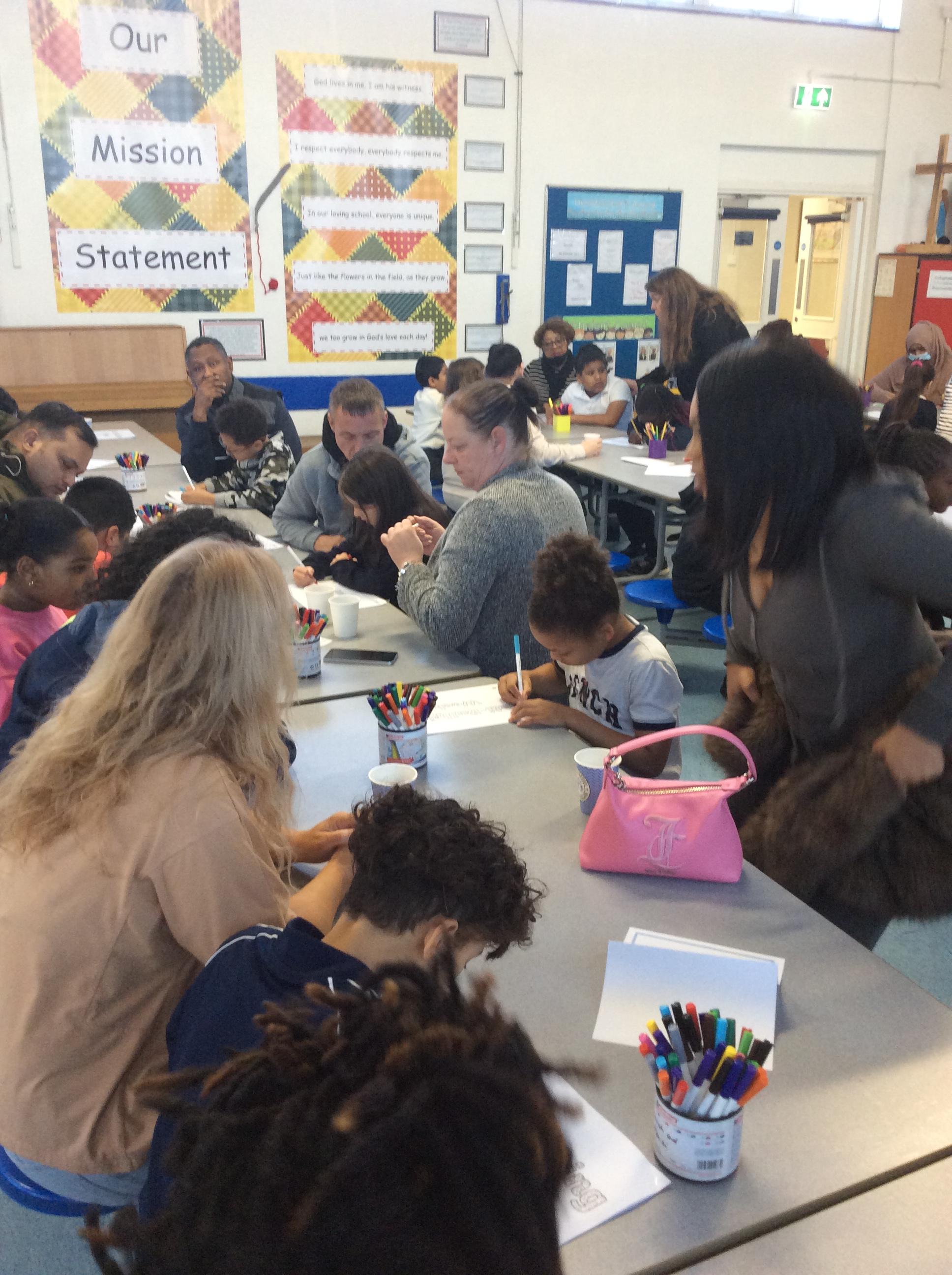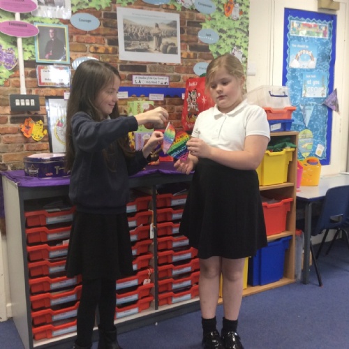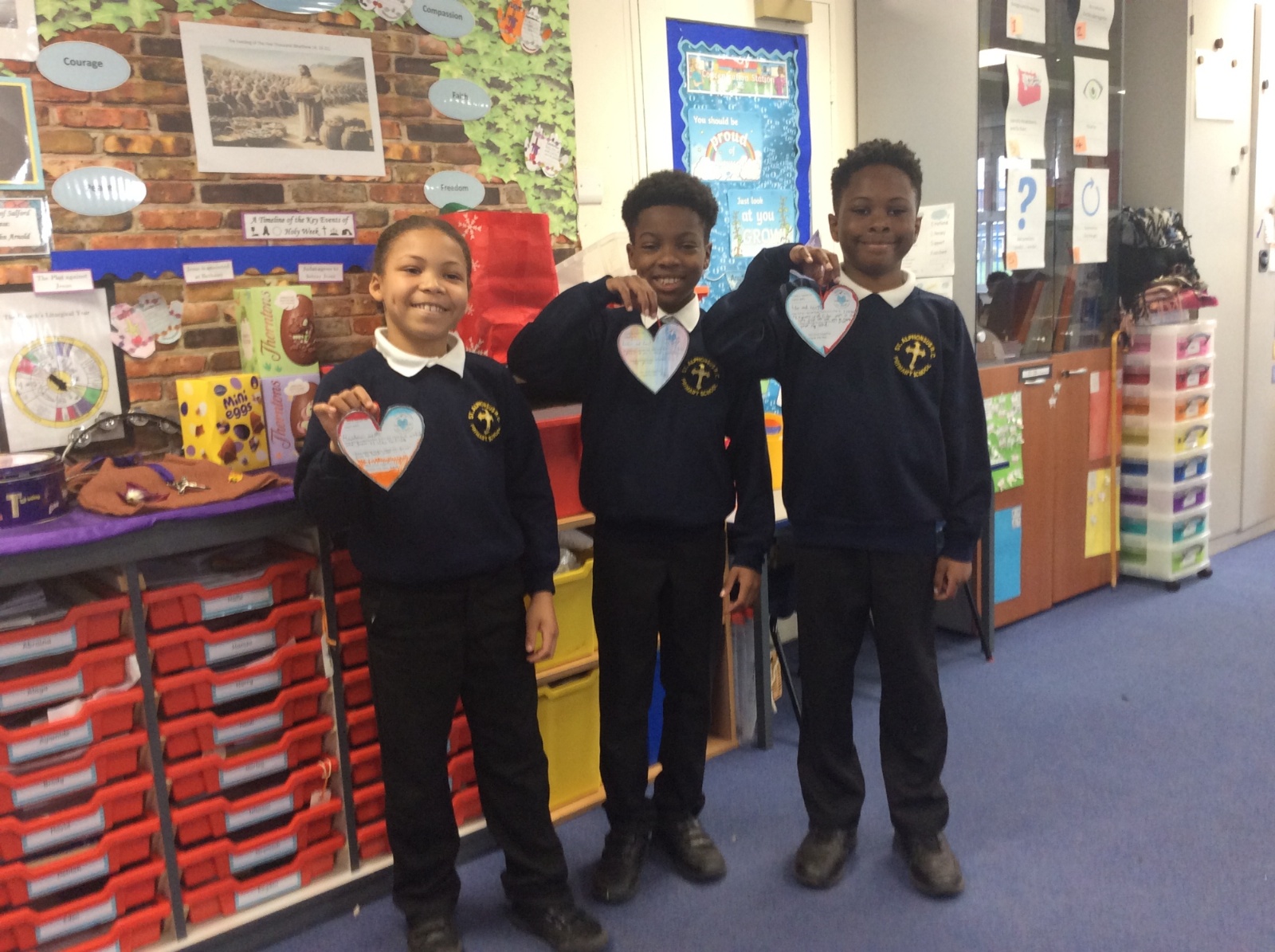 The heart symbolises love, care and reaching out to others. Giving our hearts is about listening, helping and being kind. Everyone sat with a classmate and had a short conversation. After their chat, they filled in and decorated a heart to show what the other person had shared. They then presented the heart to the other person. Our actions today showed noticing, listening, sharing, including and loving others with all our hearts.