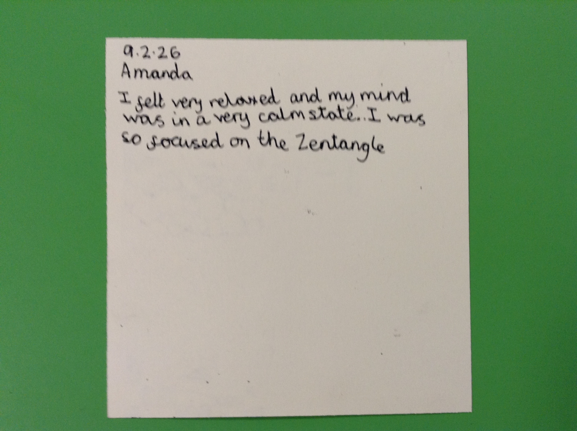 As part of Chlidren's Mental Health Week, Year 6 learned a meditative art form called Zentangling.This technique, which involves the drawing of repeated patterns, encourages mindfulness and has a positive effect on wellbeing. While using this method, children's minds empty and their heart rate drops, helping to create a sense of calm and inner peace.